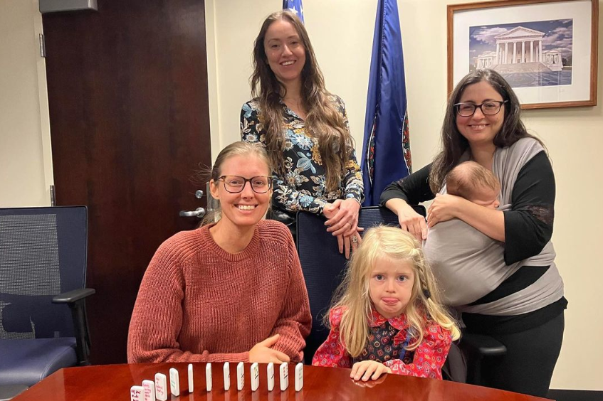 September 30th marked the “Child Care Funding Cliff” that parents and childcare providers feared because it meant the loss of federal ARPA funding that helped stabilize childcare during the pandemic. We knew that the loss of this funding would have harmful effects for childcare providers, families, and children, and we wanted to make that known to the people with the power to stop it! Across the country, moms planned trips to their legislators’ offices to share the domino effect that the loss of this funding would have. From Maine to Pennsylvania to Wisconsin, we took our dominoes and our kiddos and shared the reality that families are facing.